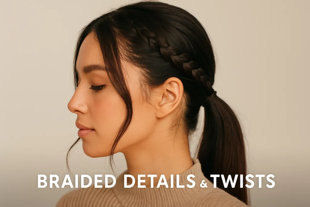 Not ready for a major haircut? Add interest with braided details. From thin accent braids tucked into sleek ponytails to halo-style twists, braided touches are dominating Pinterest’s “winter hair braid” searches right now.